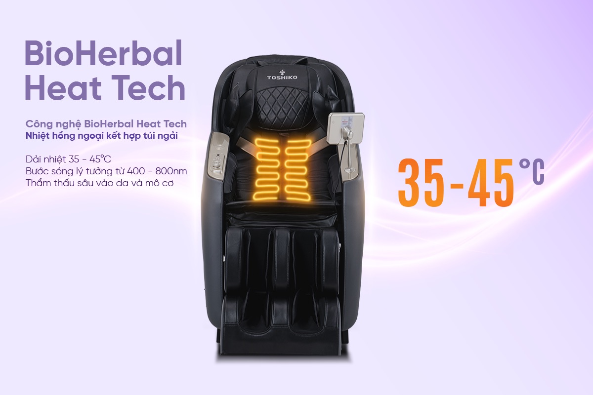 Nhiệt hồng ngoại: BioHerbal Heat Tech 35 - 45°C kết hợp túi ngải thảo dược thiên nhiên phủ rộng khu vực lưng và chân