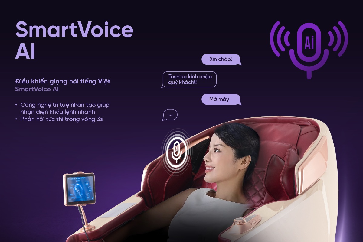 Với Luxury Legend, người dùng không cần thao tác thủ công để chuyển đổi các dạng bài tập. Thông qua điều khiển giọng nói AI sử dụng thuật toán xử lý ngôn ngữ tự nhiên, người dùng có thể “ra lệnh” cho thiết bị dễ dàng với các câu lệnh siêu đơn giản như “mở máy, tắt máy, không trọng lực, kéo giãn chuyên sâu, trị liệu Trung Hoa”,..... Công nghệ này có khả năng nhận diện chính xác tới 95% lệnh thoại tiếng Việt, phản hồi trong 3 giây, cho trải nghiệm điều khiển rảnh tay tiện lợi, thân thiện với mọi lứa tuổi.