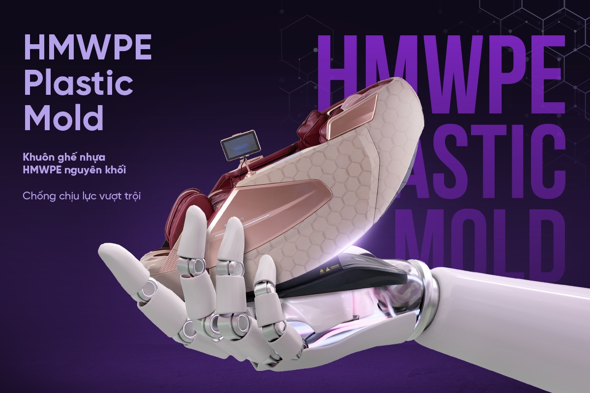 Toàn bộ khung ghế làm từ nhựa phân tử cao HMWPE chịu lực cực tốt, không lo mối mọt , cong vênh, bền bỉ theo năm tháng, vượt xa tiêu chuẩn khuôn gỗ truyền thống. Chất liệu khung này cũng giúp tải trọng ghế gia tăng đáng kể, có thể sử dụng cho hầu hết mọi thể trạng, đặc biệt lý tưởng khi sử dụng cho người dùng Việt.