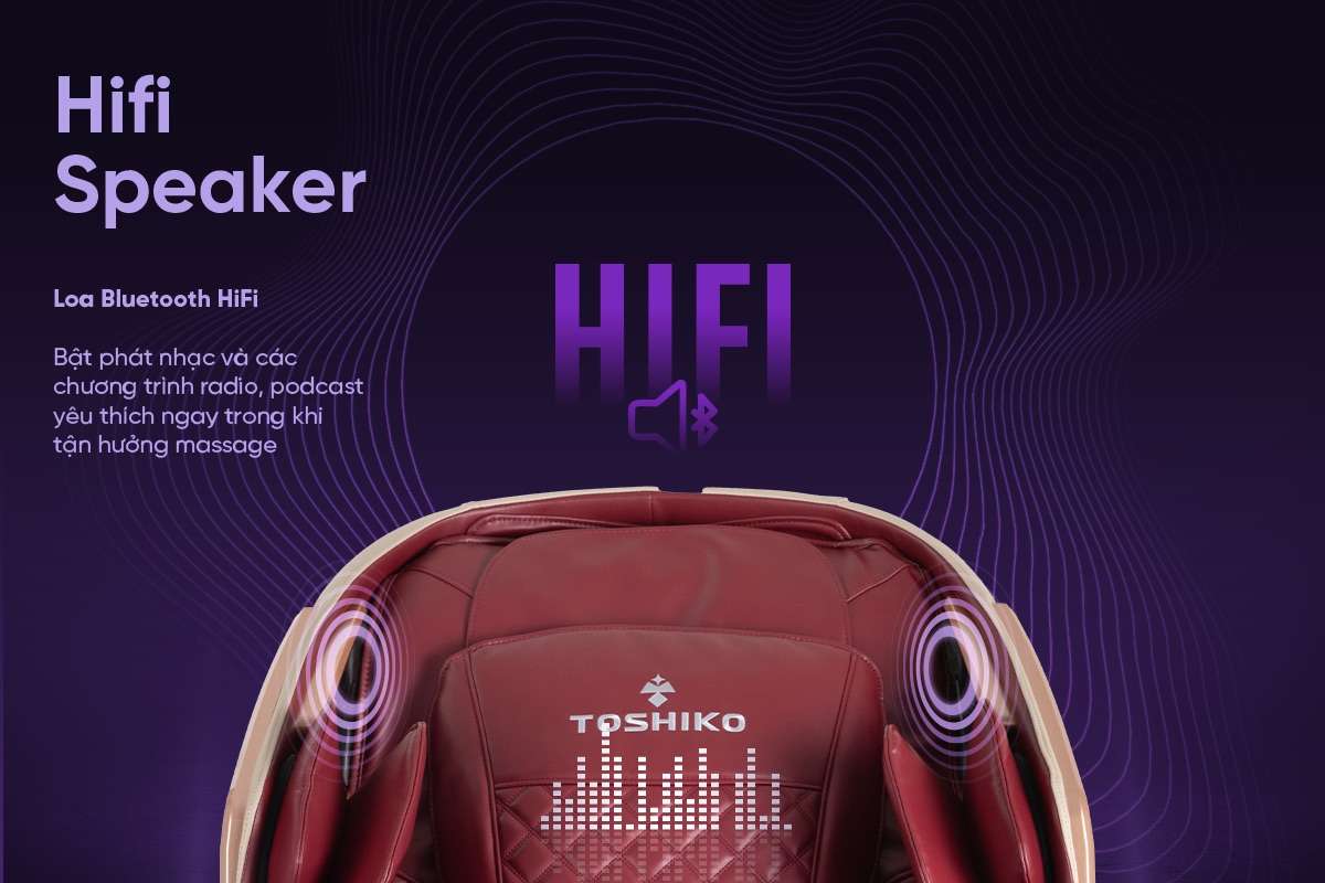 Tích hợp loa Hifi sống động, Luxury Legend biến không gian massage thành phòng spa cá nhân. Người dùng có thể bật phát các bài nhạc, chương trình radio mình yêu thích ngay trong lúc tận hưởng xoa bóp, gia tăng hiệu quả trị liệu tối ưu hơn.
