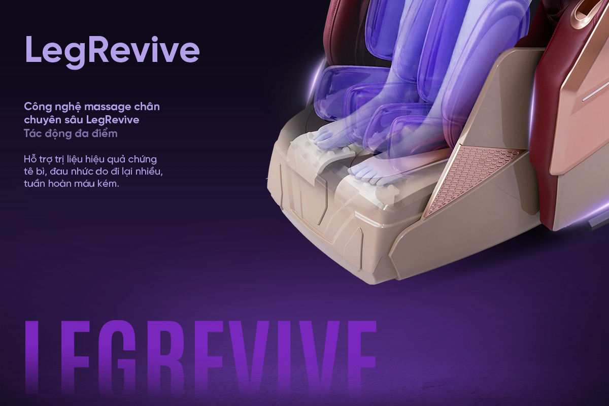 Ghế matxa Luxury Legend tích hợp công nghệ LegRevive - hệ thống massage chân chuyên sâu, phát triển từ nền tảng các phương pháp trị liệu cổ truyền.