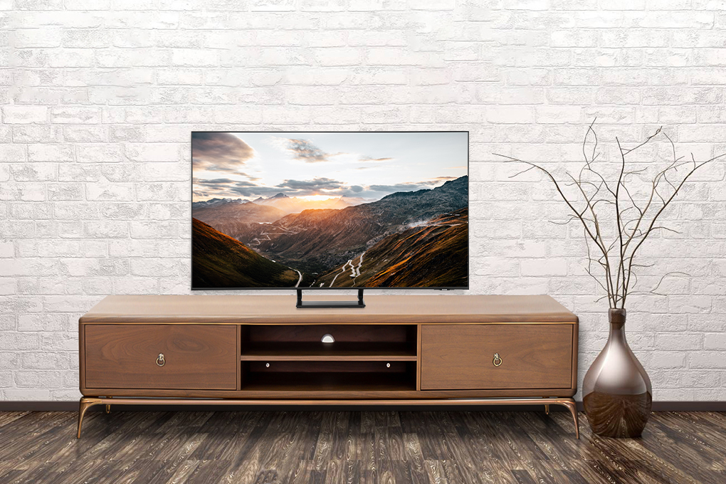 Thiết bị có chân đế cứng cáp mà thanh mảnh nên đặt trên kệ bàn vừa vững vàng vừa duy trì tính thẩm mỹ cao cho không gian sống. Nếu tháo chân đế ra bạn có thể bố trí theo kiểu treo tường rất tiết kiệm không gian. Màn hình tivi Samsung 55 inch lý tưởng cho không gian phòng khách, phòng họp rộng, vừa.