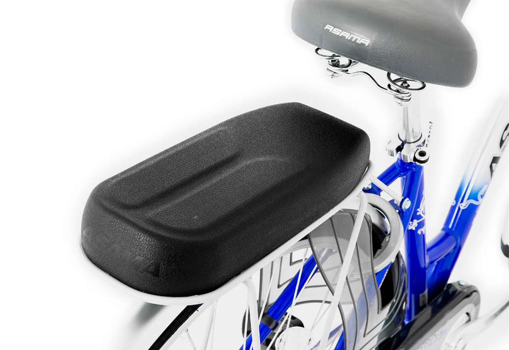 Rổ xe lớn, tiện dụng, yên trước và sau mềm. Rainbow đảm bảo thoải mái khi di chuyển và người dùng cũng dễ dàng điều khiển