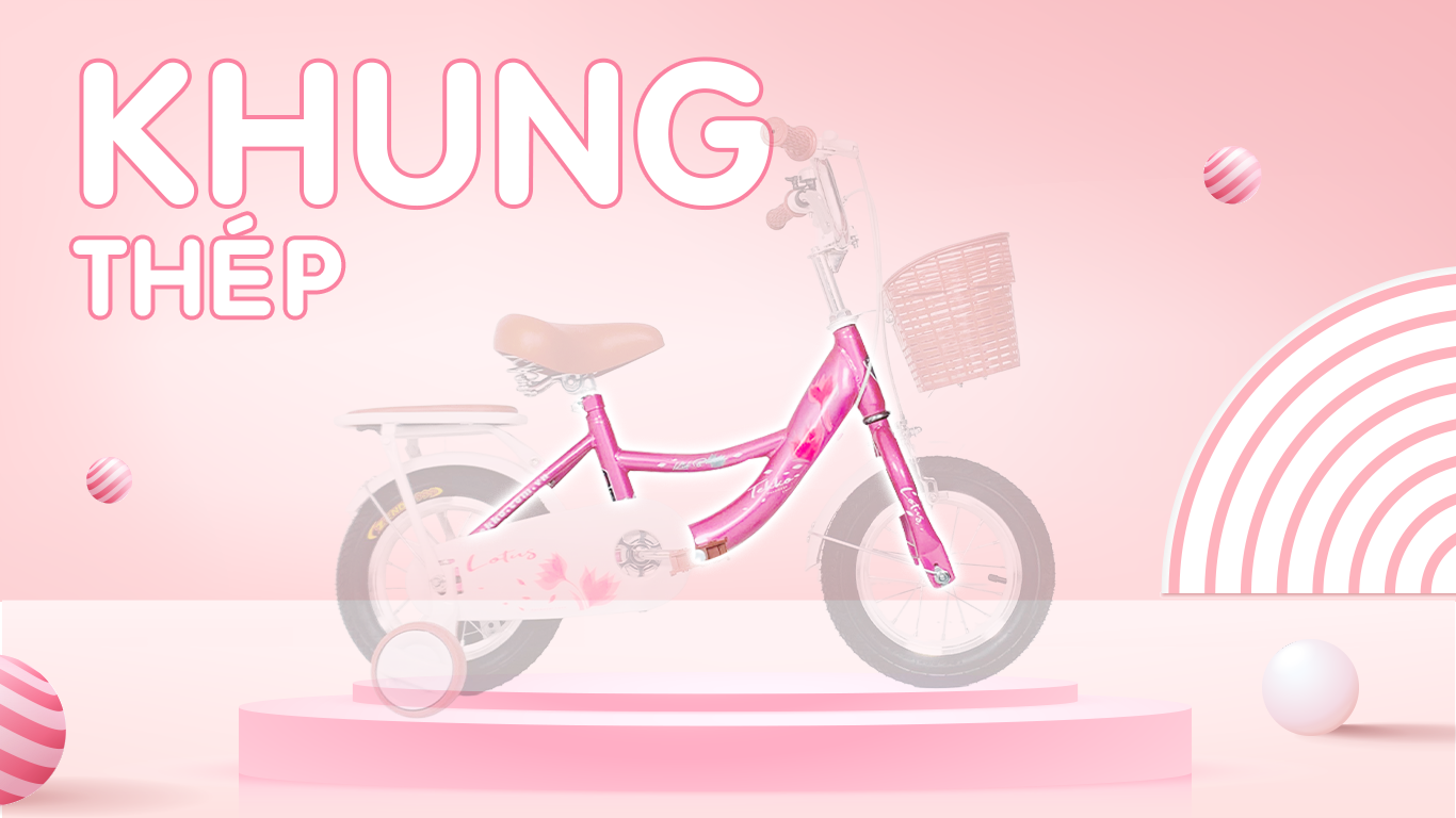 Khung xe được làm từ thép cứng cáp, lớp sơn tĩnh điện phủ ngoài khung sườn chống ăn mòn và dễ lau chùi khi bám bẩn. Bàn đạp xe vững chắc giúp bé di chuyển an toàn, dễ dàng và thoải mái.